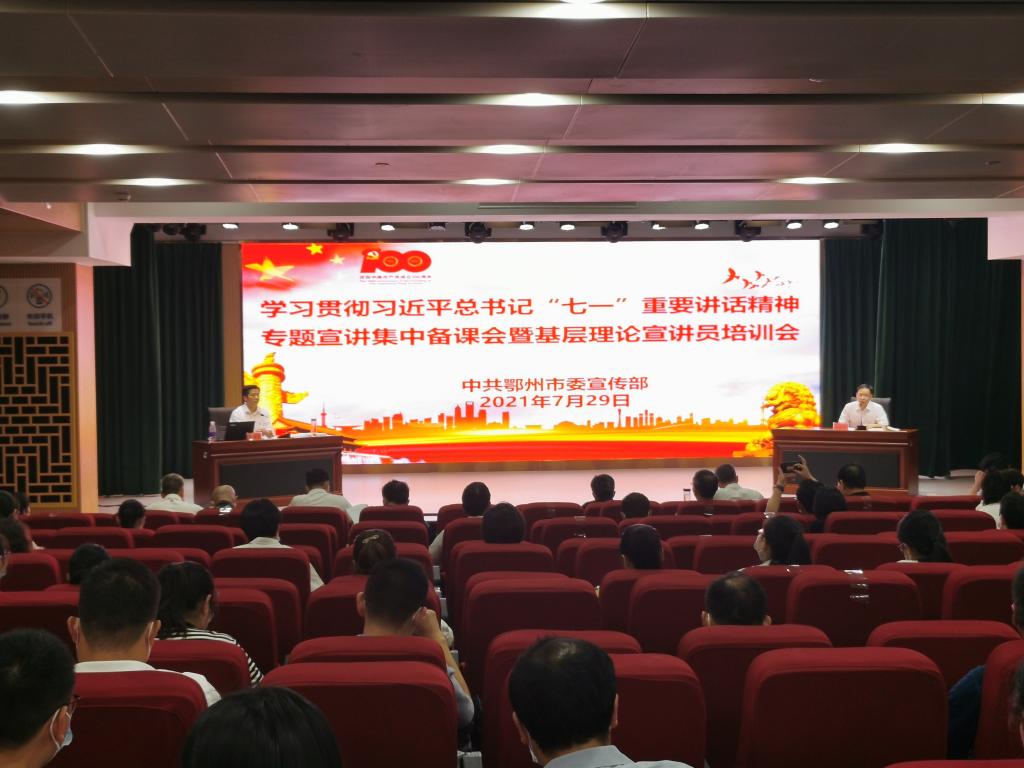 (通讯员王威)729日,,,,,,,省委宣讲团成员、我校uu电玩官网院长、曹胜亮教授应鄂州市委宣传部约请,,,,,,,在鄂州市学习贯彻习近平总书记“七一”主要讲话精神专题宣讲集中备课会暨下层理论宣讲员培训会上作树模宣讲。。。。。各区委宣传部认真理论事情的副部长,,,,,,,葛店开发区、临空经济区党工委分担理论事情的向导、市委宣讲团成员、市级其他宣讲团成员、各区县宣讲团成员共120人加入此次集中备课会。。。。。鄂州市委宣传部副部长万春风主持备课会。。。。。